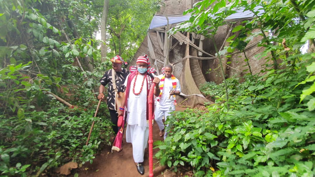 The Imoka shrine is symbolically represented by the Enwe Imo Oka(white-bellied monkey), revered as a sacred messenger of the deity and strictly protected in the area.